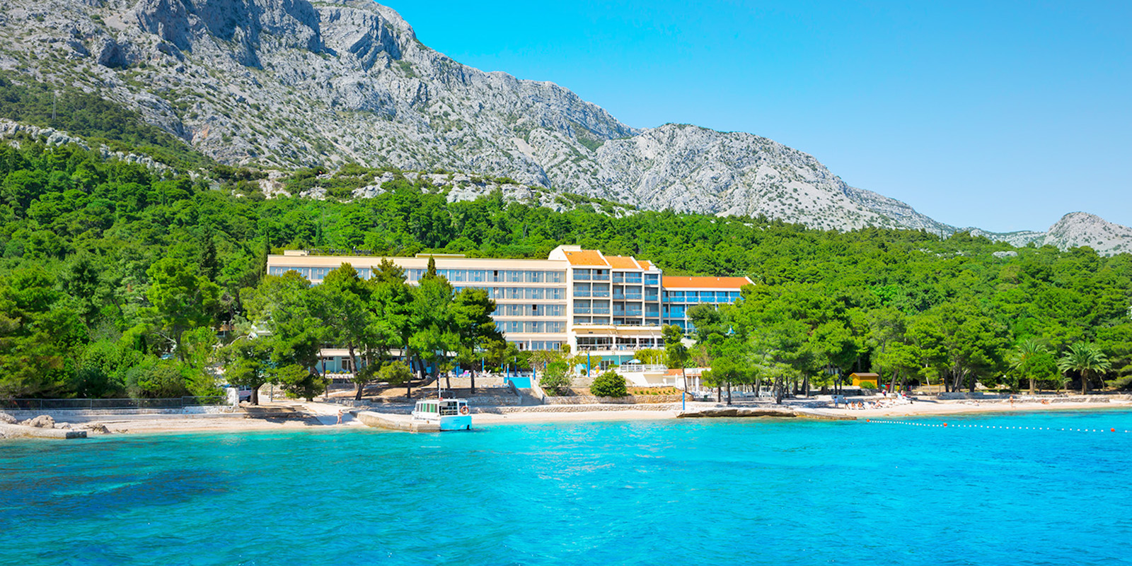 Das Aminess Grand Azur Hotel liegt in einer idyllischen Lage in Orebić auf der Halbinsel Pelješac in Kroatien. Das Hotel befindet sich direkt an einem schönen Kiesstrand, umgeben von einem Pinienwald und mit Blick auf die Adria. Es liegt etwa 1,4 km vom Zentrum von Orebić entfernt, wo sich Restaurants, Geschäfte und der Fährhafen befinden. Die Umgebung bietet zahlreiche Möglichkeiten für Aktivitäten wie Wandern, Radfahren und Wassersport. Der 961 Meter hohe Berg Sveti Ilija in der Nähe ist ein beliebtes Ziel für Wanderer. Von Orebić aus können Gäste leicht Ausflüge zu den umliegenden Inseln unternehmen oder die historische Stadt Dubrovnik besuchen, die etwa 113 km entfernt liegt. Die Region ist bekannt für ihre malerische Küste, Weinberge und reiche Kultur. Der nächstgelegene Flughafen ist der internationale Flughafen Dubrovnik, der sich in etwa 131 km Entfernung befindet.