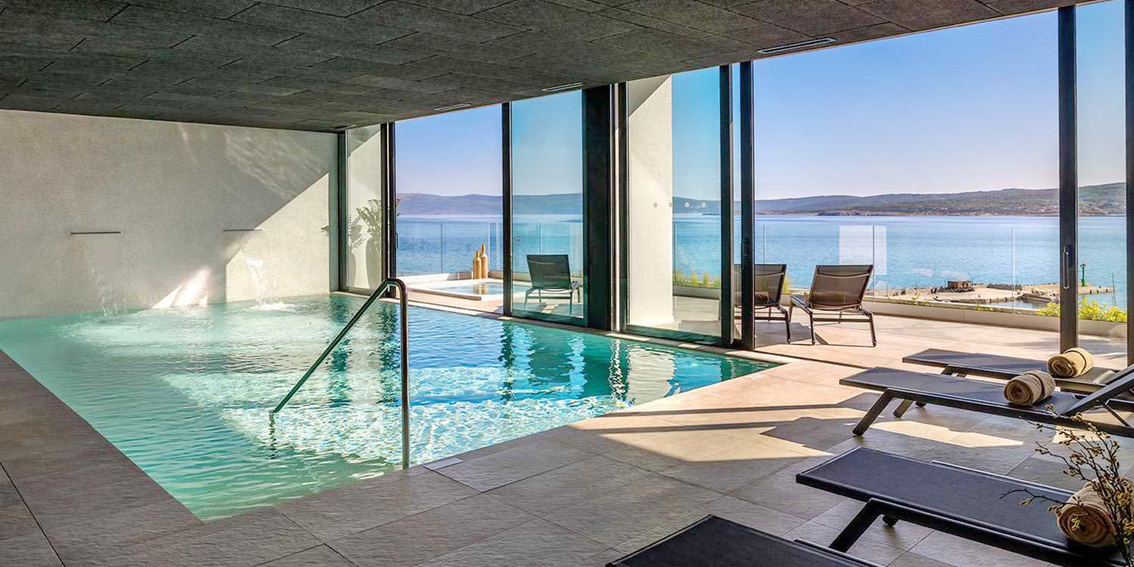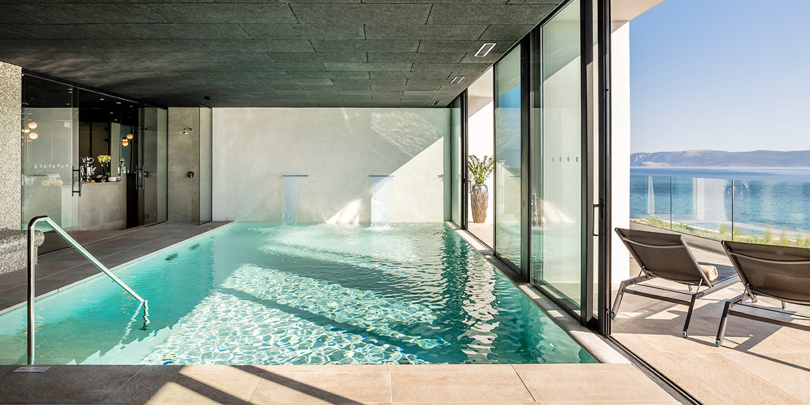 Im Aminess Younique Narrivi Hotel können Gäste ein exklusives Wellnesserlebnis genießen. Der Wellnessbereich umfasst einen Innenpool mit beheiztem Meerwasser sowie Massageräume für entspannende Behandlungen. Der moderne Fitnessraum lädt zu sportlicher Betätigung ein, während die Beauty-Zimmer eine Vielzahl von kosmetischen Behandlungen anbieten. Der Außenpool und der private Strandbereich bieten zusätzliche Möglichkeiten zur Erholung in der Natur. Sonnenschirme und Liegestühle sorgen für Komfort und Entspannung. Das Hotel kombiniert Luxus und Ruhe für eine perfekte Auszeit.