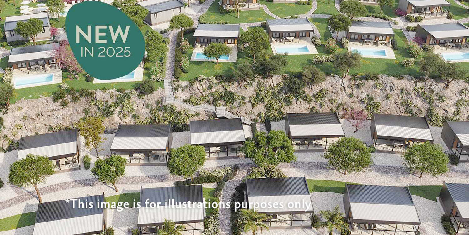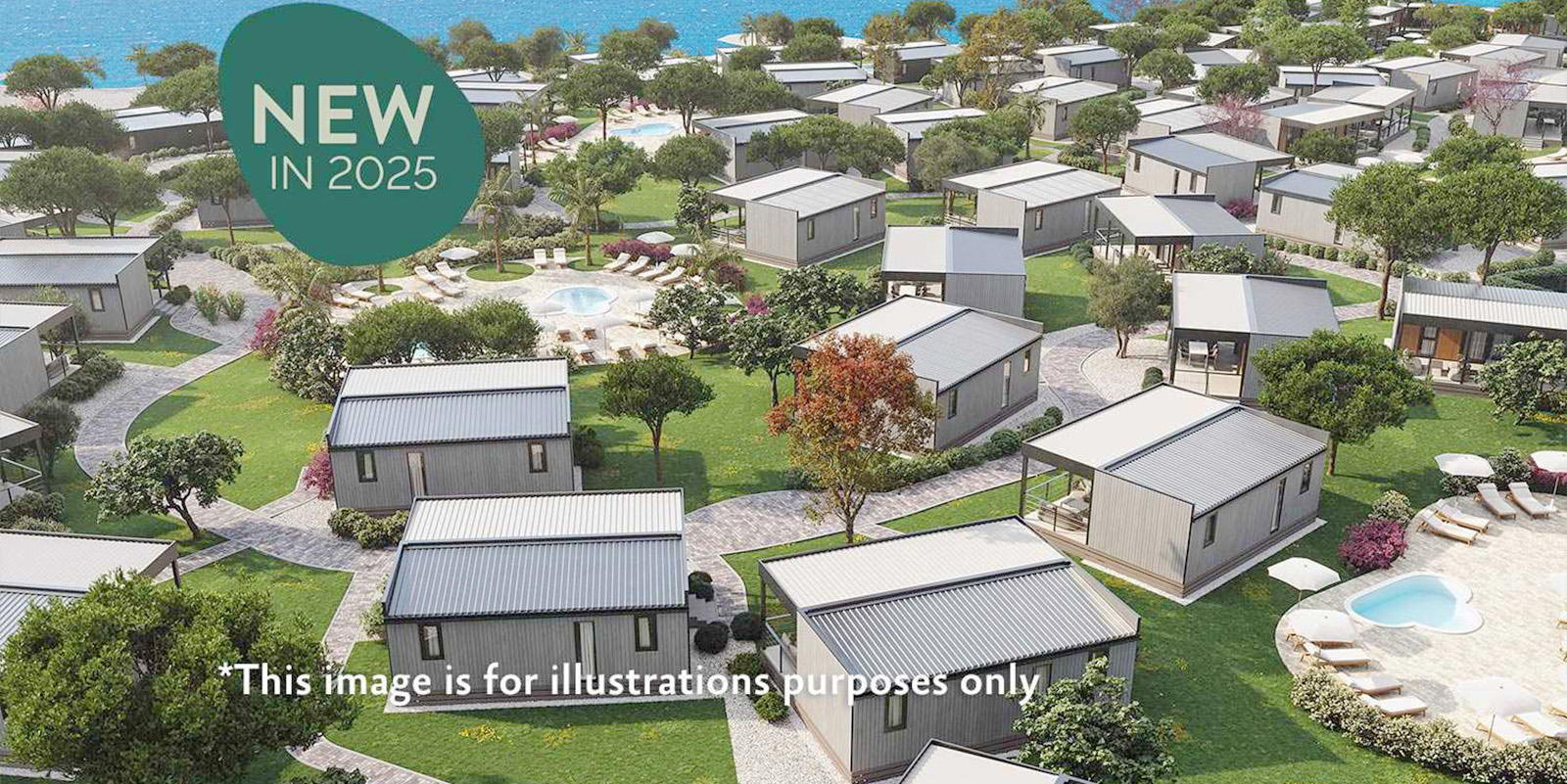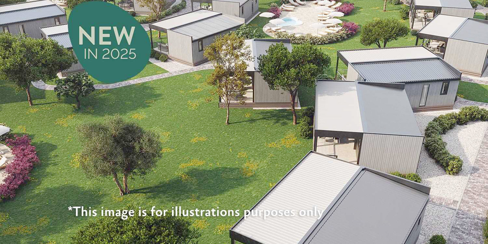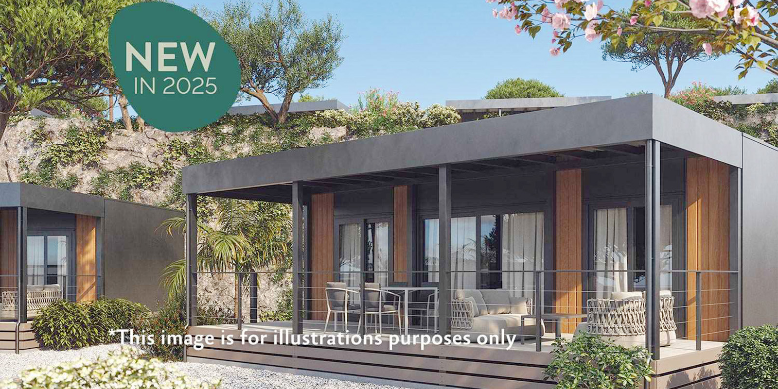 Klimatisierte Mobilheime mit voll ausgestatteter Küche und Terrasse
